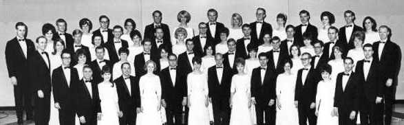| This picture was issued by BYU in anticipation of the European tour which, at the last minute, had to be postponed to the following year. The caption issued with the picture stated: "The 1967 A Cappella Choir from Brigham Young University, Provo, Utah. Currently making a tour of Europe. These noted collegian singers have been rated as 'among the best in the U.S.A.' by a national convention of music educators. They are directed by Dr. Ralph Wooward."